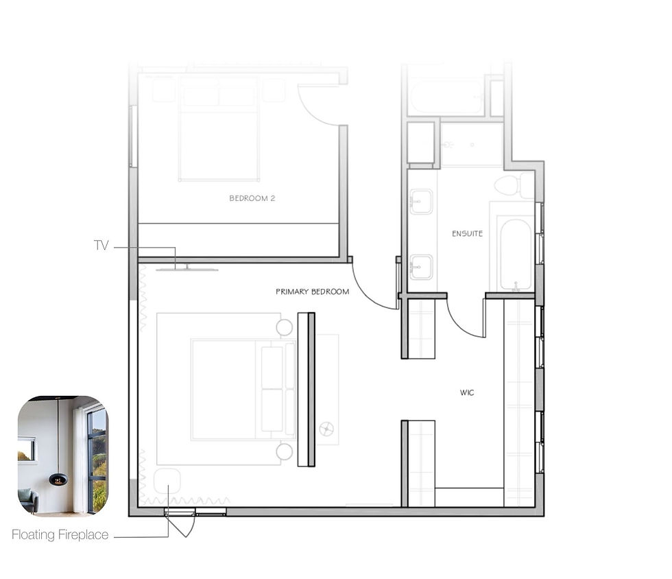A frequent challenge in primary suites is balancing entertainment and ambiance. Clients often want both a fireplace and a TV, but placing them together can feel awkward. Truthfully a TV in a bedroom is not my first choice, but it's a necessity for some.